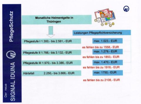Sie erhalten die gesetzlich vorgeschriebenen aber im Pflegefall nicht ausreichenden Pflegeleistungen!